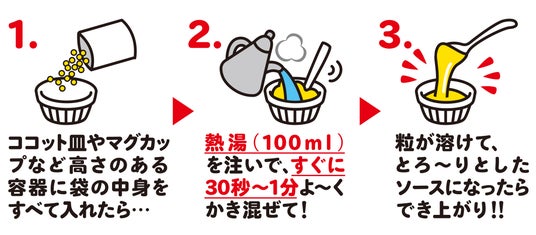 (1)お湯を注いで混ぜるだけでチーズソースがとろ~り伸びて、冷めてもトロトロ感をキープ!