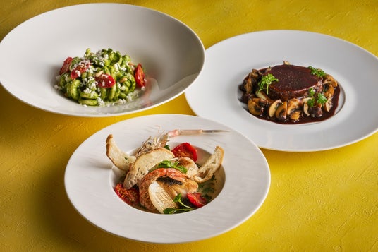 メイン料理が選べるランチコースに、レバノ兄弟のレシピで作るメニューをご用意。レバノ兄弟のふるさとカンパニア州・ナポリ郊外にある火山の名前が由来となった山型のパスタを味わえるヴェスヴィオパスタのジェノベーゼや、北イタリアの伝統的な牛ほほ肉の煮込み、アクアパッツァなどフェアならではの味わいをランチメニューでお楽しみいただけます。レストラン: All-Day Dining OASIS GARDEN(36F)