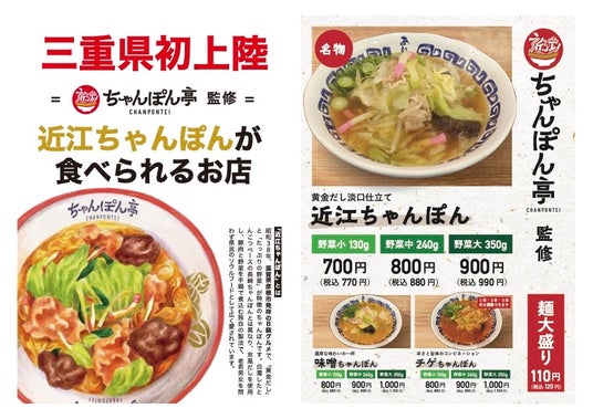 同社はブランドビジョンに基づき、滋賀県発祥の「近江ちゃんぽん」を全国に広めることを使命としています。提携先である株式会社うめやとの協力を得て、「近江ちゃんぽん」の販売を始めることで、三重県の食文化に新たな息吹を吹き込みます。