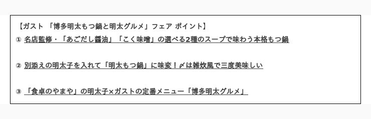 ガスト 「博多明太もつ鍋と明太グルメ」フェア 概要