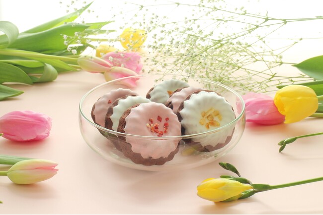 『プティクグロフ(ホワイト&ストロベリー)』は、濃厚なチョコレート生地をベースに、なめらかな口どけのチョコレートをコーティングし仕上げにトッピングをした、寒い時期にぴったりな可愛らしいチョコレートの焼菓子です。プティクグロフホワイトはチョコレート生地にホワイトチョコレートとオレンジピールをトッピング。オレンジピールのほろ苦さとチョコレートの甘さが絶妙にマッチした味わいがお楽しみいただけます。また、プティクグロフストロベリーはチョコレート生地にストロベリーチョコレートとフリーズドライの苺をトッピング。苺の甘い香りと酸味がひろがり、チョコレートの甘さと絶妙にマッチした味わいがお楽しみいただけます。