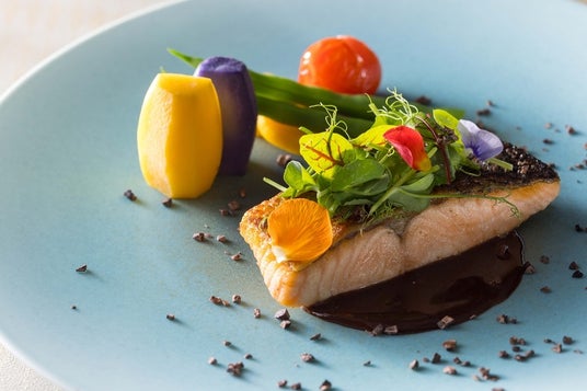 ・サーモンのポワレ 味噌ソース カカオニブのアクセント