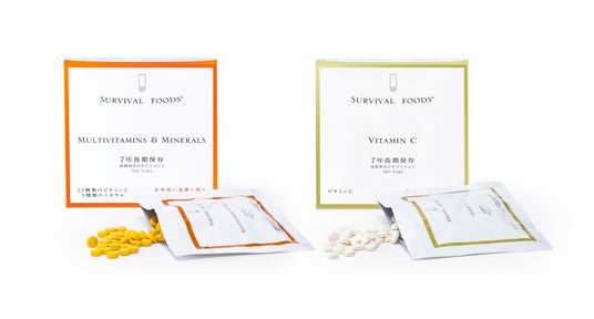 「サバイバルフーズ(R)サプリメント」は災害時(非常時)に必要な栄養素を考え設計された「7年長期保存のサプリメント」(栄養機能食品)です。
