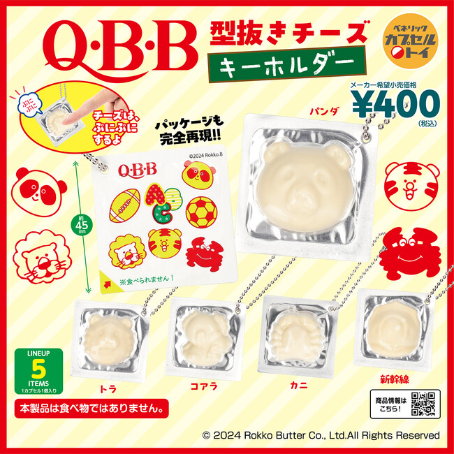 ベネリック株式会社(本社:東京都千代田区、社長:横山 武) は、六甲バター株式会社の展開するプロセスチーズのトップブランド*「Q・B・B」の商品を再現した、カプセルトイ「Q・B・B 型抜きチーズキーホルダー」(全5種類 / 1回400円・税込)を2024年1月下旬より順次、全国のカプセルトイ自販機コーナーにて発売いたします。*(株)インテージ SCI(15~79歳・沖縄含む) ベビーチーズ4P市場 2022年1月~12月 購買金額シェア