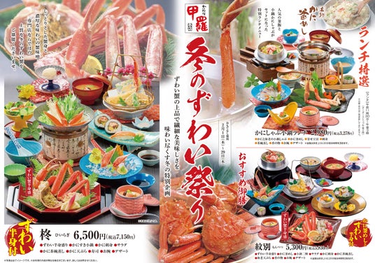 株式会社甲羅(本社:愛知県豊橋市、代表取締役:坂元 正明)が全国で40店舗展開している老舗かに料理専門店「甲羅本店」では2月1日(木)より「冬のずわい祭り」を開催します。