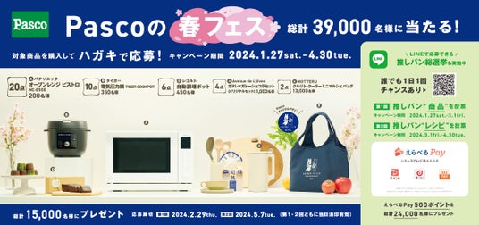 今回は「Pascoの春フェス」と題し、対象商品を購入してハガキでご応募いただくキャンペーンと、お好きなPasco商品・レシピを投票いただくLINEキャンぺーン『推しパン総選挙』を同時開催いたします。