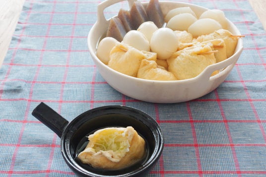 出汁を吸ったキャベツとお揚げのジューシー巾着が主役のおでんです。寒い季節はアツアツを。夏は冷やしてもおいしいです。