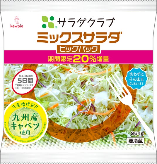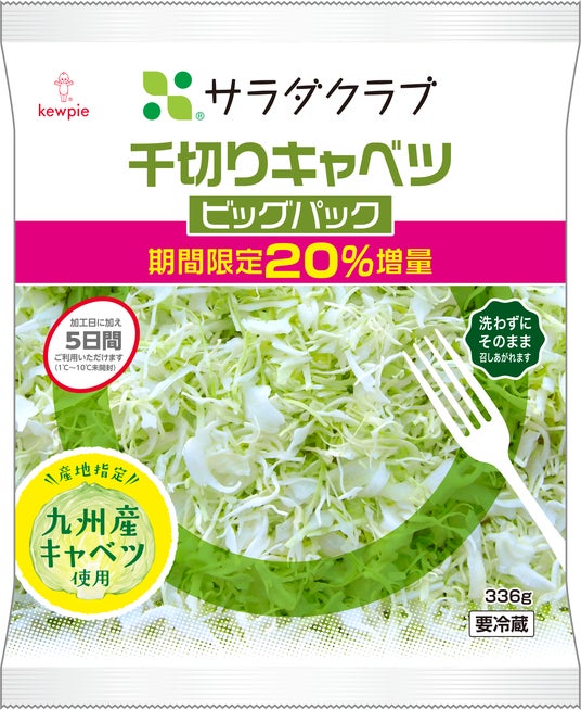 株式会社サラダクラブ(代表取締役社長:金子俊浩、本社:東京都調布市)は、2024年2月1日(木)から2月29日(木)までの期間、価格はそのままで、九州エリア限定で「千切りキャベツ ビッグパック」「ミックスサラダ ビッグパック」を20%増量して販売します。また、期間中は、配合しているキャベツを全て九州産に切り替えます※1 。