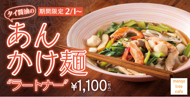 アークランドサービスホールディングス株式会社の子会社、海外の本場の味を日本で展開する株式会社ミールワークス(本社:東京都千代田区、代表取締役社長:船橋 洋治、以下MW)は、タイ・バンコクに本店をもつ「マンゴツリー」の姉妹店で本格タイ料理を日常的に楽しめる「マンゴツリーカフェ」で、2024年2月1日(木)から2月29日(木)まで「タイ醤油のあんかけ麺 “センレック ラートナー”」を期間限定販売いたします(一部店舗除く)。