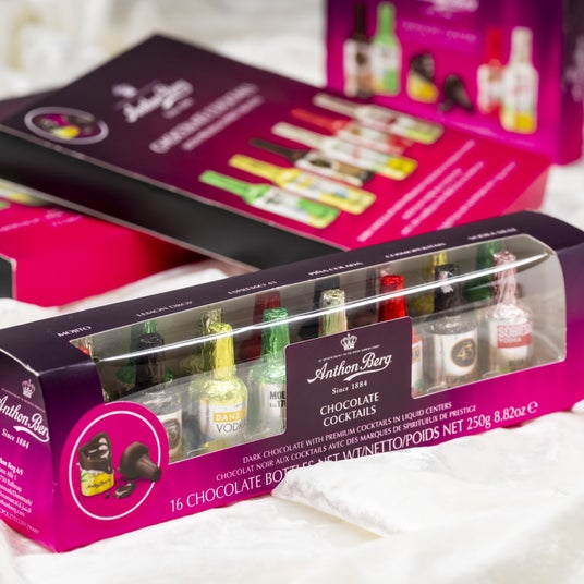 世界の銘酒と、6種類のカクテルをダークチョコレートの中に閉じ込めました。アンソンバーグのコレクションの中でも特に女性に人気のアソートです。