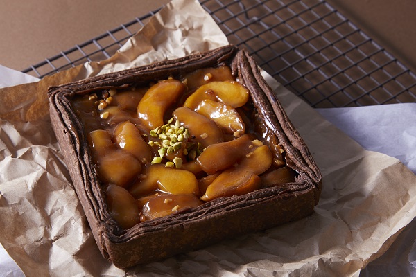 2~3月はパイの定番『アップルパイ』を販売します。オリジナルのチョコレートパイを四角く焼き上げ、中にはクランブルとブラウニーを敷き詰めて、約4個分のリンゴをたっぷり詰め込みました。