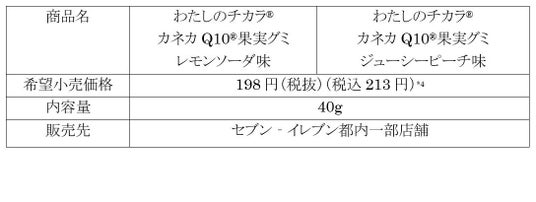 株式会社カネカ(本社:東京都港区、社長:田中 稔)のグループ会社であるカネカ食品株式会社(本社:東京都新宿区、社長:福崎 太、以下 カネカ食品)は、1月30日(火)より還元型コエンザイムQ10*1を手軽に摂取することができる新商品『わたしのチカラ(R)*2「カネカQ10(R)果実グミ」』をセブン‐イレブン都内一部店舗*3にて発売いたします。