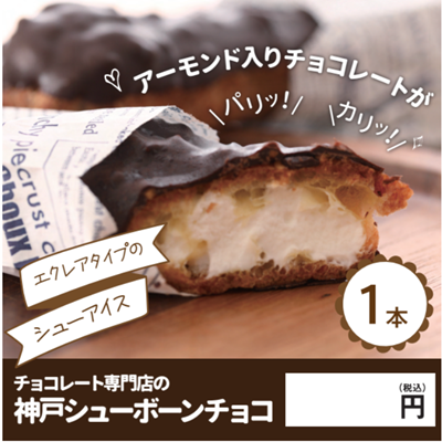クラッシュアーモンド入りのチョコレートをコーティングしたシューアイスは美味しさバツグンです★