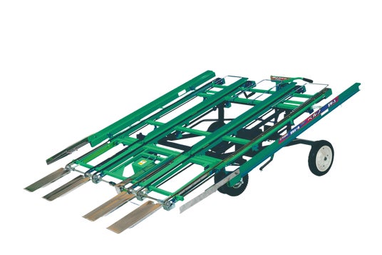 稲の管理作業の中で最も大変と言われている苗箱並べ作業。若手でも辛いというこの腰を屈める作業を、楽な姿勢&効率的な作業にできるというのが、苗箱並べ機「ベルノ」です。
