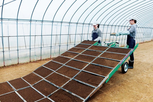 作業が効率的になる分、作業に必要な人手も削減できます。例えば、今までだったら5~8人必要だった苗箱並べの作業が、3人でできるように。人手不足のこのご時世、苗箱並べの期間だけ人手を集めるのも大変ですよね。人件費も削減できて、ダブルで効率的です。