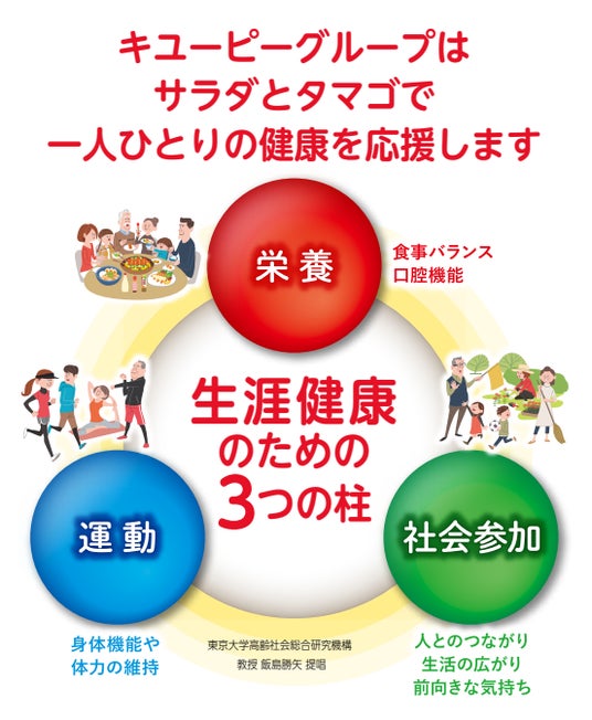 キユーピーは東京大学高齢社会総合研究機構と協力し、志を共にする企業として、高齢者の食生活向上を図る業界連携の場である「食のコンソーシアム(「食の在り方研究会」)」に参加しています。