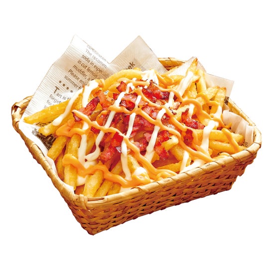 テンフォーのサイドメニューでも特に人気のフライドポテト。ピザのお供にしても単品で食べてもおいしいこのポテトが、Wチーズソースとベーコンをまとってキセキの大変身!チェダーチーズ入りソースとモッツァレラチーズ入りソースをたっぷりと、さらにアクセントでカリカリのベーコンをトッピングし、食べる手を止められないやみつきの新商品となりました。