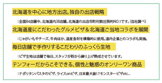事業内容:宅配ピザチェーン「テンフォー」・宅配肉丼チェーン「第104代肉横綱」を展開