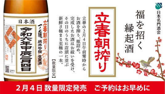 立春朝搾りは日本名門酒会が1998年(平成10年)に企画した春の祝い酒で、一ノ蔵は2005年(平成17年)から参加し今回で20回目を迎えます。