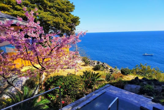 今年も2月に開催される「河津桜まつり」。当館でも露天風呂に咲く河津桜とともに、相模湾に昇る朝日、月に照らされ湯船に浮かぶピンク色の夜桜を眺めながら、お花見温泉をご堪能いただけます。