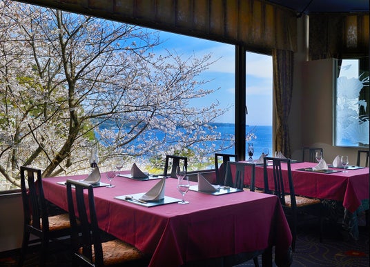フランス料理と繊細な日本料理が調和する優雅なレストラン。相模湾を眺めながらワインとともに、シェフこだわりのメニューを、気取らずお箸でいただきます。伊豆の季節の旬をご賞味ください。春は窓辺に咲き誇る桜を愛でつつ、お花見グルメに舌鼓。