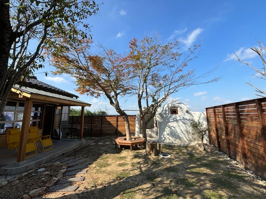自然の中に佇む日本の伝統的な古民家をベースにし遊牧スタイルと融合した宿泊施設がアースバッグサウナ(土のサウナ)を併設し、新たな癒しの旅を提案します。