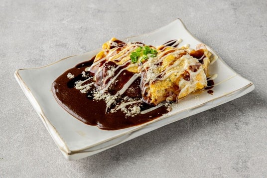 千房こだわりの国産小麦100%使用のお好み焼生地にチーズを挟んでふっくらと焼き上げ、薄焼きたまごをのせた上にフレッシュトマトを煮込んだアパ社長カレーをトッピング。ふっくら生地に濃厚なチーズの旨味とトマトと本格派ビーフカレーが最高のマリアージュとなる至高の一枚となっています。