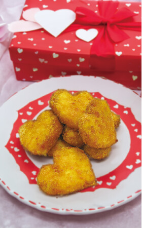 期間限定で販売するハート型のエビカツは、ハート型に成型して作っており、バレンタインデーやホワイトデーにぴったりなかわいい見た目にしています。甘いものが苦手な方にも季節のイベントを楽しんでいただける商品です。また、チョコとは別に用意しても喜ばれる商品となっています