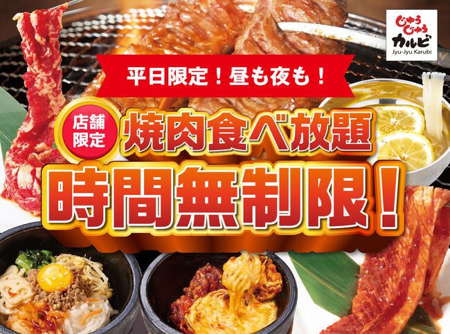 株式会社トマトアンドアソシエイツ(本社:兵庫県西宮市、代表取締役社長:小林 大二)が運営する、焼肉食べ放題「じゅうじゅうカルビ」では、2024年2月1日(木)~2月14日(水)の平日限定で焼肉食べ放題を時間無制限でご利用いただけます。すべての食べ放題コースが対象です。心ゆくまで焼肉食べ放題をお楽しみください。さらに公式アプリでお得なクーポンを配信中です。是非ダウンロードのうえ、ご来店ください。URL:https://www.tomato-a.co.jp/jyujyukarubi/campaign/app/