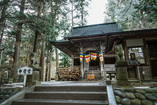中尊寺 弁慶堂中尊寺平泉駅を出発後、中尊寺へお送りいたします。坂道の多い場所ですので日暮前に散策がおすすめです。弁天堂の横には茶屋もございますので、あたたかな飲み物やお団子で一休みも。