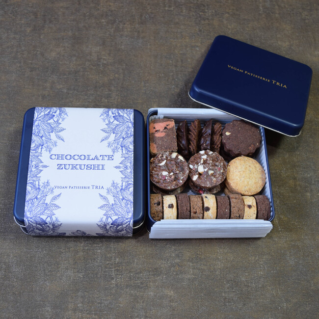 ヴィーガン&グルテンフリースイーツ専門店VEGAN PATISSERIE TRIA(ヴィーガンパティスリートリア)から冬季限定のクッキー缶が発売されました。贈り物やバレンタインにもお使いいただける、ココアやカカオマスを中心にフレーバー展開しています。