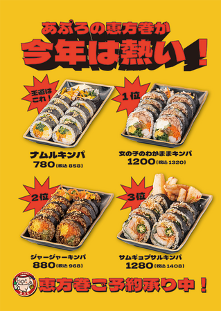 あぷろグループ全店のキンパコンテストのグランプリに輝いたキンパが恵方巻で登場!