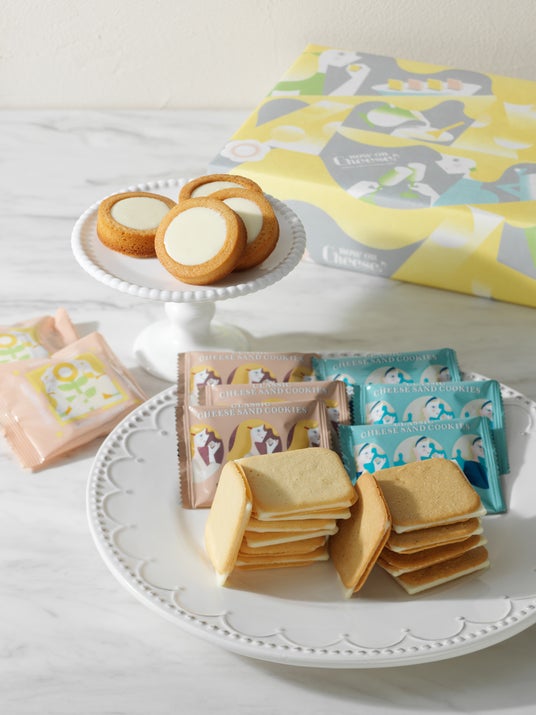 カマンベールチーズを贅沢に使用した一番人気商品のフォンダンタルトケーキと濃厚なチーズ感が魅力的な「スモークチーズ&カマンベール」、「カラメル&ゴルゴンゾーラ」の2種のチーズラングドシャを詰め合わせた特別なギフトBOXです。