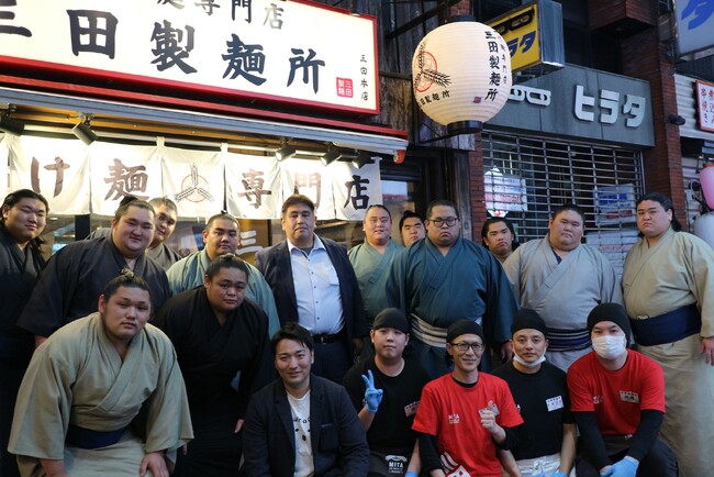 株式会社エムピーキッチン(本社:東京都渋谷区、代表取締役:村上竹彦)が運営する『つけ麺専門店 三田製麺所』に、大相撲・二子山部屋さま公式YouTubeチャンネル『二子山部屋 sumo foods』がご来店されました。力士の皆様が全部のせ特濃つけ麺・たまごかけ麺・唐揚げ・鯛だし塩つけ麺など沢山の商品をお召し上がりいただく様子は、YouTube動画にてご覧いただけます。