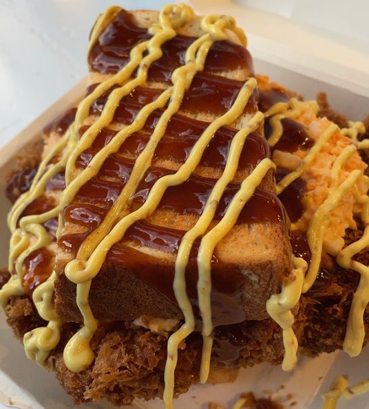 食パンからはみ出る!日本一でかいチキンカツサンド!