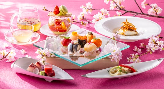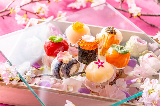 【2024年1月30日】 ヒルトン東京(新宿区 総支配人 フィリックス・ブッシュ)2階日本料理「十二颯」では、3月4日(月)より春限定「華てまり寿司アフタヌーン」をお一人様¥7,800にてご提供します。春らしい薄紅色、薄桜色の花々を敷き詰めた木箱の上には、花のつぼみを思わせる可憐なてまり寿司が並び、まるでテーブル上でお花見を楽しんでいるかのように、華やいだ気分でお食事のひと時をお過ごしいただけます。
