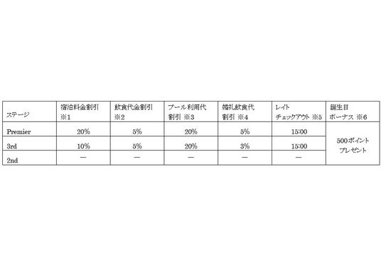 ホテルご利用時、ステージに合わせて、1,000円(税別)=10~30ポイント貯まります。