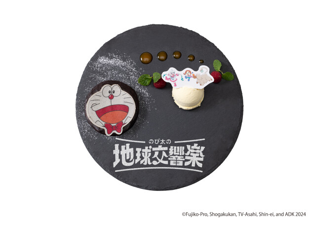今回、2024年3月1日(金)公開の『映画ドラえもん のび太の地球交響楽(ちきゅうシンフォニー)』のメニューを期間限定で提供いたします。店内の装飾も一部テーブルのオリジナルラッピングや、映画ポスター掲示、映画予告編のモニター上映、映画場面カット展示をします。また、『ドラえもん』のコミックスも取り揃えていますので、まんがを読み『ドラえもん』の面白さと魅力を感じながら、ここでしか味わえないカフェタイムをお楽しみください。