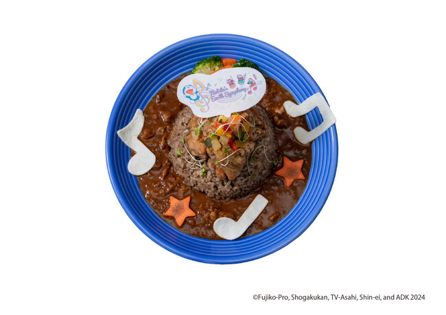 映画でも活躍するひみつ道具「ムードもりあげ楽団」をイメージして、CafeLish名物のハヤシライスに唐揚げをもりもりに積み上げたボリューム満点の一皿。