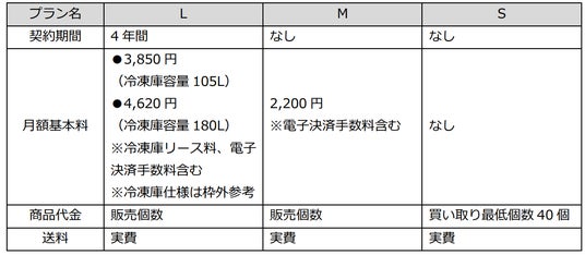 ※参考:冷凍庫容量別仕様