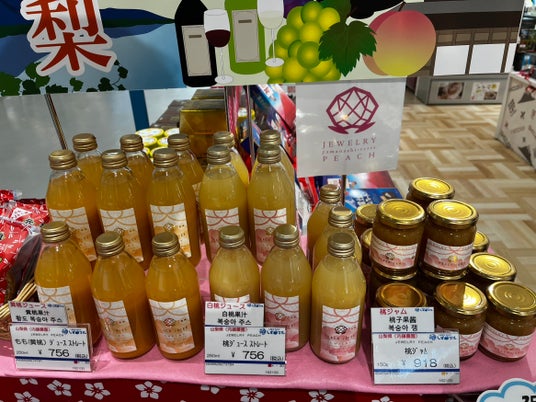 「お土産用に購入したい!」「自宅でもジュースを楽しみたい!」の声にもご対応できるよう、蛇口ももジュースに使用されているやまなし内藤農園の桃ジュース(瓶)や、ジャム等のご購入も可能です。