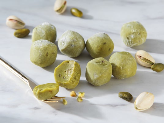 "コク深いピスタチオで包む、なめらかなくちどけ"