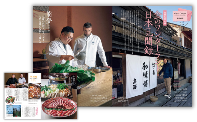 東京・銀座「グッチ オステリア ダ マッシモ ボットゥーラ トウキョウ」のヘッドシェフ、アントニオ・イアコヴィエッロさんが、日本の未知なる食材を求めて各地を旅する企画の第2弾。今回は、2023年12月に石川県の能登と加賀を訪問。それぞれ独自の食文化が発展した滋味深い北陸の魅力を深掘りし、日本とイタリアを融合する新しい料理に挑戦しました。しかしながら、2024年1月に発生した能登半島地震で、訪問先各所が甚大な被害を受けられました。被災地の皆様には謹んでお見舞い申し上げます。特集では地域の食文化を脈々とつないできた方々への敬意と、復興への願いを込めて、取材当時のエピソードをそのままお届けいたします。また、4月にはアントニオシェフが石川県へオマージュを捧げる特別料理を味わう、読者限定ランチ会を開催いたします(参加費の一部は災害義援金として寄付させていただきます)。