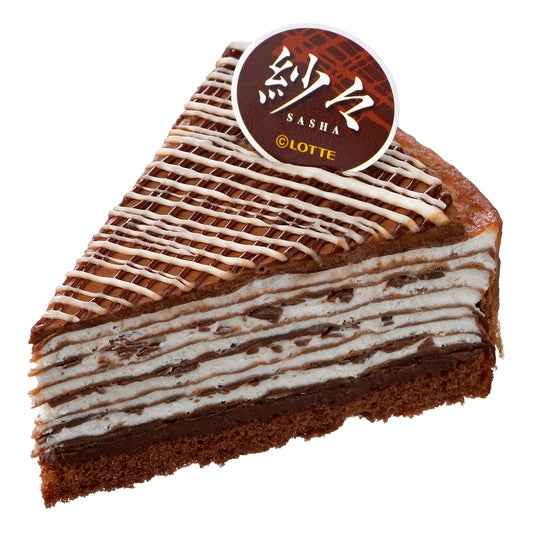 特長:ココアクレープと生クリーム入りホイップクリームを重ねて、パリパリチョコを4層にサンド。上面は2種のソースで線状のチョコが幾重にも重なる「紗々」をイメージして仕上げました。「紗々」の繊細な見た目や、ほどける口どけ、チョコレートのパリパリ食感をお楽しみください。