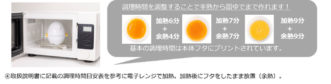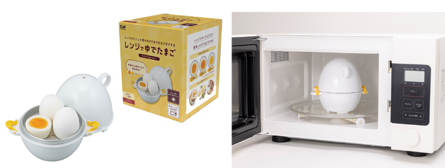 今回登場する「レンジでゆでたまご」は、レンジでチンして待つだけで失敗なく、簡単にゆでたまごができる時短ツールです。朝食やお弁当には欠かせないゆで卵をお湯を沸かさずに、レンジにかけるだけで作ることができるので、忙しい朝にも、火加減に手間取ることなく調理することができます。また、調理時間を調整することにより半熟から固ゆでまで、自分の好みのゆで具合に設定することができます。