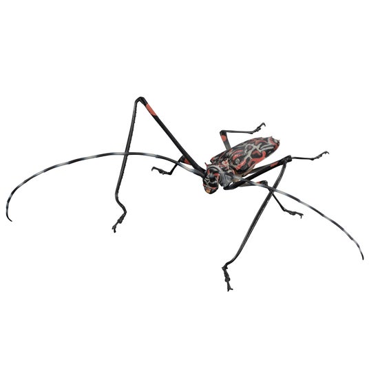 カラフルな外観の昆虫カミキリムシを徹底的にリアルに再現しました。身近に見られるゴマダラカミキリ、沖縄地方に生息するホシベニカミキリ、手が長く派手な模様を持つテナガカミキリ、きれいな色をしたルリボシカミキリなど計4種類のラインアップにてお届けします。