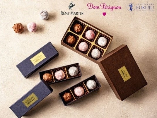 本商品に使われているのは「ドン ペリニヨン ロゼ」「レミーマルタンXO」「福寿 純米吟醸」の三種類。いずれも世界のセレブリティがこよなく愛する銘酒を使い、ゴージャスな味わいに仕上げました。パティシエが心を込めて一つ一つ手作りする本商品は、そのラグジュアリー感から、近年のバレンタイン商戦で注目のご自身へのプレゼント、「ご褒美チョコ」におすすめです。