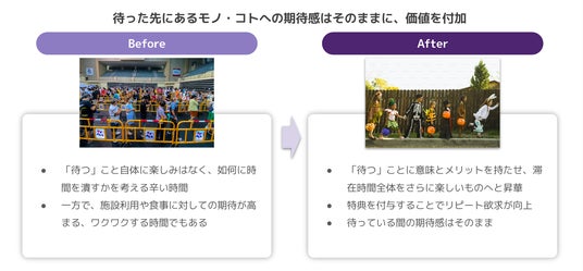 「Fun to Wait」は待ち時間をただの時間の消費ではなく、価値に変えることを目指しています。待機時間に応じて利用者に特典を付与することで、利用者に待機時間中の新たな価値を提供し、顧客満足度や再来店意欲の向上などが期待できます。
