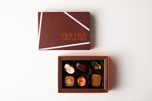 2024年の新作5種入り。ホールフルーツガナッシュや黒ごまのプラリネなどデプラポールショコラティエの伝統と新しいフレーバーが一緒に楽しめるアソートボックスです。