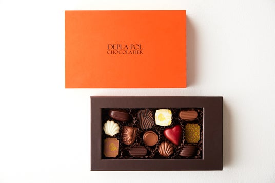新作9種を含むコンプリートボックス。このアソートにしかないアルコール使用のコアントローなど、デプラポールショコラティエを満喫できるアソートです。